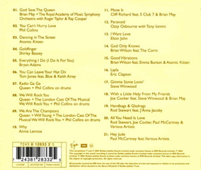 Written by N/A (Traditional) Performers: Brian May + The Royal Academy Of Music Symphony Orchestra with Roger Taylor & Ray Cooper Appears on: Party At The Palace CD, Party At The Palace DVD Recorded live at Buckingham Palace June 3, 2002. The historic opening of The Queen's Golden Jubilee featured Brian May on top of Buckingham Palace playing God Save The Queen. On stage assisting is The Royal Academy Of Music Symphony Orchestra with Roger Taylor on timpani and Ray Cooper on gong. You Can't Hurry Love 3:04 Written by Holland/Dozier/Holland Performers: Phil Collins + The Royal Academy Of Music Symphony Orchestra, The Royal Academy Of Music Jazz Horns, and the House Band with Roger Taylor Appears on: Party At The Palace CD, Party At The Palace DVD Recorded live at Buckingham Palace June 3, 2002. A very good live version of the Phil Collins classic. Phil Collins of course is on lead vocals while Roger Taylor fills in on drums. Radio Ga Ga 2:18 Written by Roger Taylor Performers: Queen (Brian May & Roger Taylor) + Phil Collins Appears on: Party At The Palace CD, Party At The Palace DVD Recorded live at Buckingham Palace June 3, 2002. Lead vocals by Roger Taylor. Drum duties are handled by Phil Collins. We Will Rock You 1:48 Written by Brian May Performers: Queen (Brian May & Roger Taylor) + The London Cast Of The Musical We Will Rock You + Phil Collins Appears on: Party At The Palace CD, Party At The Palace DVD Recorded live at Buckingham Palace June 3, 2002. Brian handles lead vocal duties and the cast of the London musical sings backing vocals. Roger Taylor and Phil Collins play drums. We Are The Champions 2:35 Written by Freddie Mercury Performers: Queen (Brian May & Roger Taylor) + Will Young + The London Cast Of The Musical We Will Rock You + Phil Collins Appears on: Party At The Palace CD, Party At The Palace DVD Recorded live at Buckingham Palace June 3, 2002. Will Young of Pop Idol fame is on lead vocals. Bohemian Rhapsody 5:45 Written by Freddie Mercury Performers: Queen (Brian May & Roger Taylor) + Tony Vincent + Hannah Jane Fox + Sharon D. Clarke + The London Cast Of The Musical We Will Rock You + Phil Collins Appears on: Party At The Palace DVD, UK We Will Rock You 10th Anniversary CD Recorded live at Buckingham Palace June 3, 2002. Lead vocals are shared between Tony Vincent, Hannah Jane Fox, and Sharon D. Clarke. The full operatic section is performed live by the WWRY London Cast. Move It 2:43 Written by Ian Samwell Performers: Cliff Richard feat. S Club 7 & Brian May Appears on: Party At The Palace CD, Party At The Palace DVD Recorded live at Buckingham Palace June 3, 2002. A live version of the Cliff Richard hit. Brian May is featured on lead guitar. With A Little Help From My Friends 5:42 Written by Lennon/McCartney Performers: Joe Cocker feat. Steve Winwood & Brian May Appears on: Party At The Palace CD, Party At The Palace DVD Recorded live at Buckingham Palace June 3, 2002. Lead vocals by Joe Cocker, Brian May on lead guitar, Phil Collins on drums, and Steve Winwood on keyboard. All You Need Is Love 3:37 Written by Lennon/McCartney Performers: Rod Stewart, Joe Cocker, Paul McCartney, Ladysmith Black Mambazo, and Various Artists Appears on: Party At The Palace CD, Party At The Palace DVD Recorded live at Buckingham Palace June 3, 2002. Paul McCartney's set finished the Queen's Golden Jubilee concert. Paul is joined on stage by virtually every performer at the concert that day. Brian can be seen on guitar and Roger Taylor is assisting with percussion. Hey Jude 6:51 Written by Lennon/McCartney Performers: Various Artists Appears on: Party At The Palace CD, Party At The Palace DVD Recorded live at Buckingham Palace June 3, 2002. The last song of the evening, Paul McCartney is on piano and vocals and is joined by all of the artists that performed that day. Brian is standing next to Eric Clapton, sharing guitar duties and Roger Taylor is again assisting with percussion. |